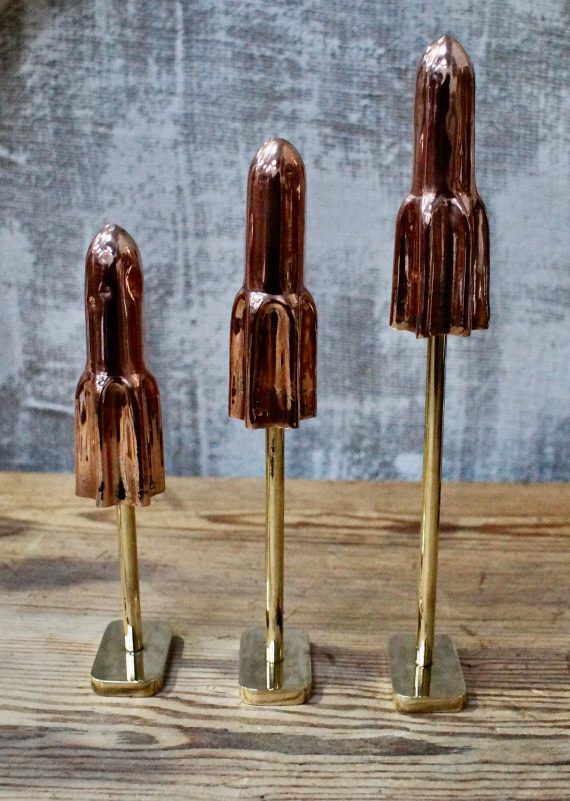 These stunning Original 1940’s Wall’s Rocket Lolly moulds have been cast in Copper and mounted on a beautiful brass stand to showcase these stunning little gems from our childhood.