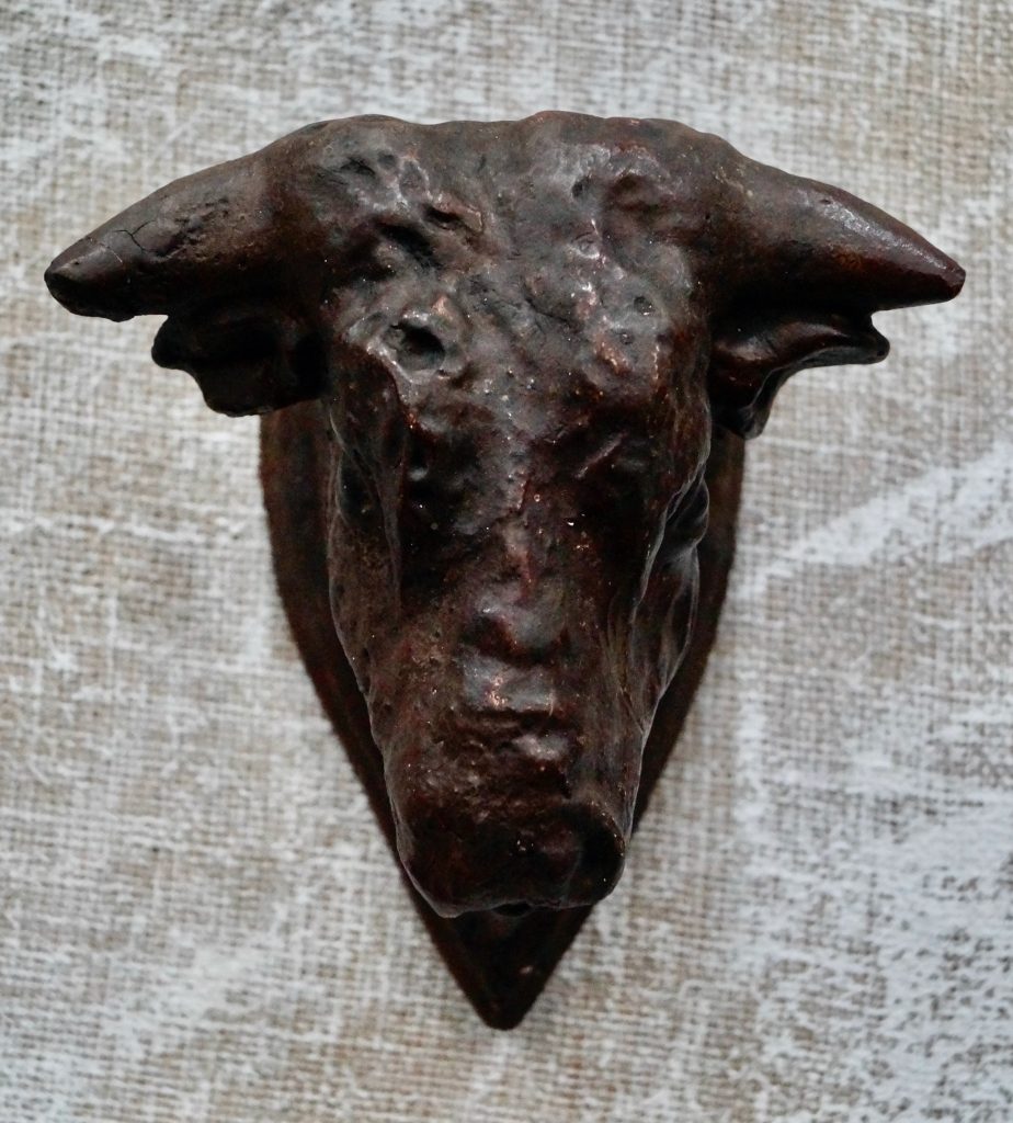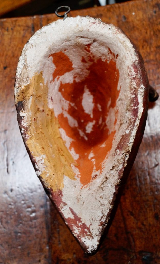 Remains in good condition, there has been an old repair made to the head but this does not take away how nice this piece is, nicely cast and still retains the original paint, fitted with a wire to the back so it can be hung, would be ideal for mounting in the kitchen.