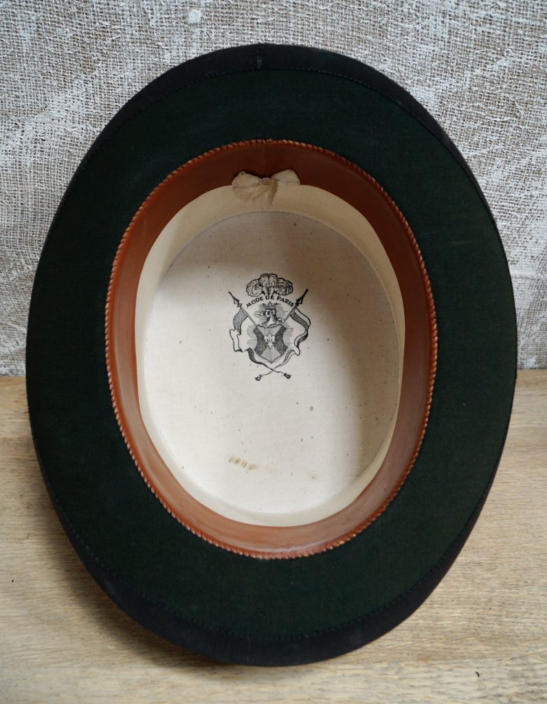 A Large French Silk Top Hat By Mode De Paris. Made from silk and retaining the original lining and leather inner headband. The makers mark is stamped on the inside Mode De Paris. C1900