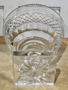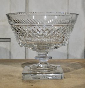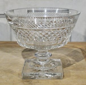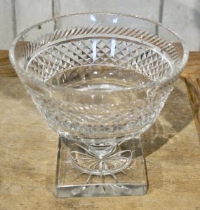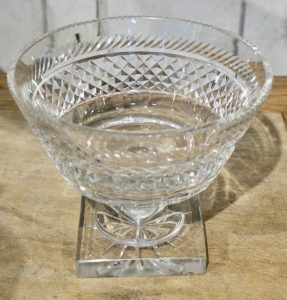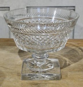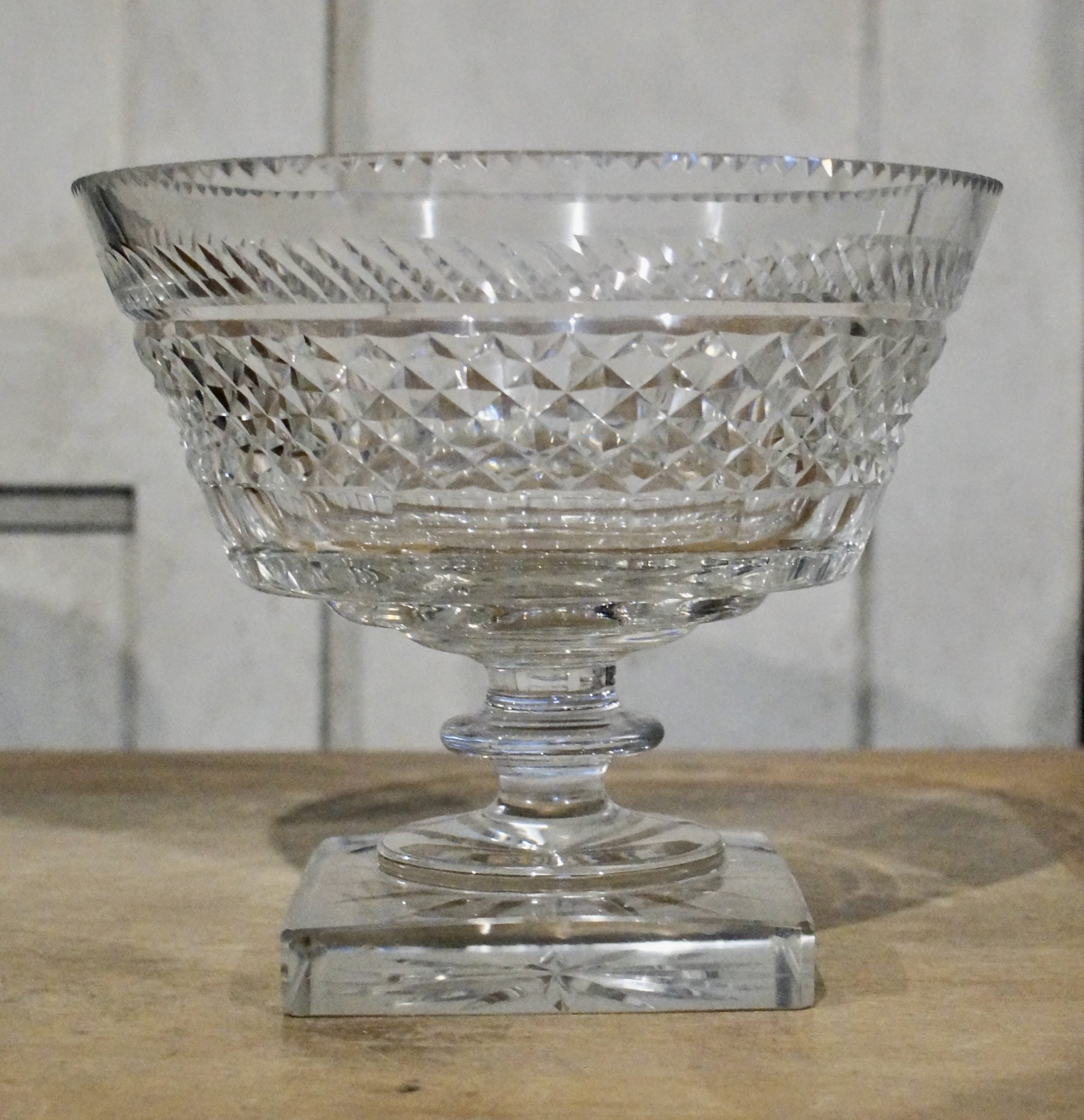 A Beautiful Victorian cut glass crystal pedestal bowl. Hand made from cut crystal, with a diamond cut design, set on a square pedestal foot. C1890