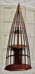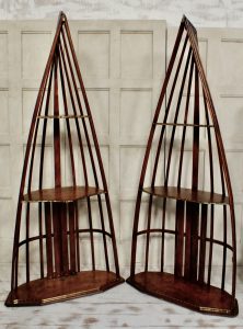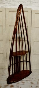 A Superb Vintage Blandford Skeleton Canoe Bookshelf, this canoe was converted into a beautiful bookshelf, made from the skeleton of a 1940’s collapsible framed canoe, made from Beech and Pine with brass fittings and trim, the original wood canoe frame supports 3 shelves, transforming this into a lovely piece of furniture. C1940